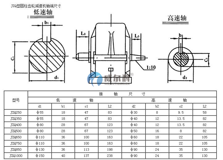 JZQ齒輪減速機(jī)應(yīng)用范圍及結(jié)構(gòu)概況 1、應(yīng)用范圍及優(yōu)點(diǎn): 本機(jī)廣泛應(yīng)用于各種起重、運(yùn)輸、礦山機(jī)械及其它各種機(jī)械中作減速之用。其聯(lián)動方式,可用聯(lián)軸器直接聯(lián)動,也可用三角皮帶撓性聯(lián)動。 本機(jī)通用性和互換性強(qiáng),維修簡單,效率系數(shù)為0.94,具有起動阻力小,運(yùn)動靈活等優(yōu)點(diǎn)。 2、結(jié)構(gòu)概況及主要零部件: 本機(jī)結(jié)構(gòu)型式為兩級三軸圓柱斜齒水平分割全封式。潤滑油盛于減速機(jī)之內(nèi)部,在主動軸和中間軸上設(shè)有擋油板,各軸支點(diǎn)均用滾動軸承,其軸向間隙,可用內(nèi)部調(diào)整環(huán)調(diào)整之,本機(jī)上部有一檢查蓋,下部有油標(biāo)指針和排廢油用的油塞。